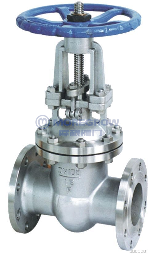 不銹鋼閘�:手�、法蘭連接形式、明桿楔式剛性單閘板,閥座密封面材料為不銹鋼,公稱壓� PN16~PN200,閥體材料為不銹鋼的閘閥�