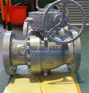 Q347N蝸輪固定式球�浙江摩根閥門有限公司制�,型號Q347N-600LB 10" �250MM)閥體采用WCB鑄鋼,�(nèi)件材�(zhì):A105+STL20#,閥座:A105+STL16#,蝸輪采用國�(chǎn)蝸輪�