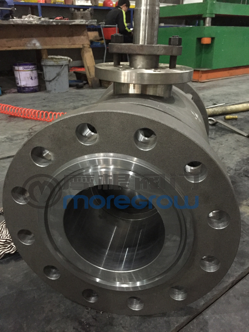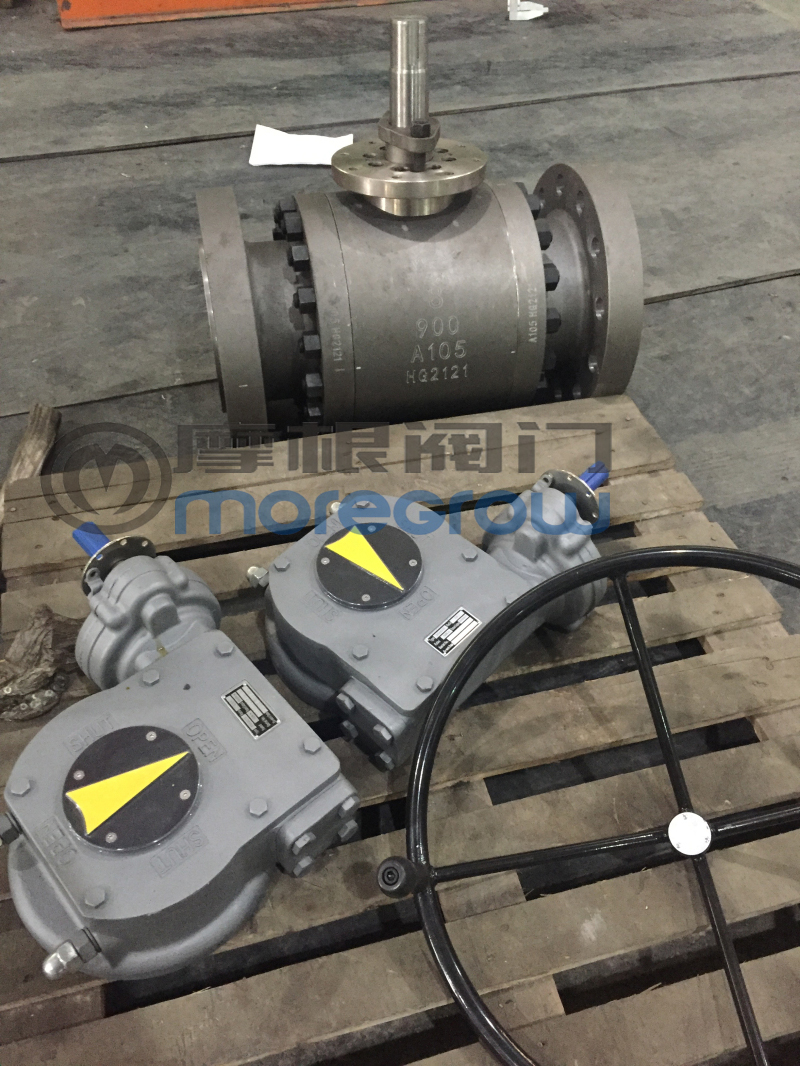 高壓浮動(dòng)球閥生產(chǎn)廠家浙江摩根閥門有限公司制�,型號(hào)Q041Y-900LB 8" 閥體采用A105鍛鋼,�(nèi)件材�(zhì):球體A105+STL,操作方式:渦�,圖片上方為光桿,不含執(zhí)行器�